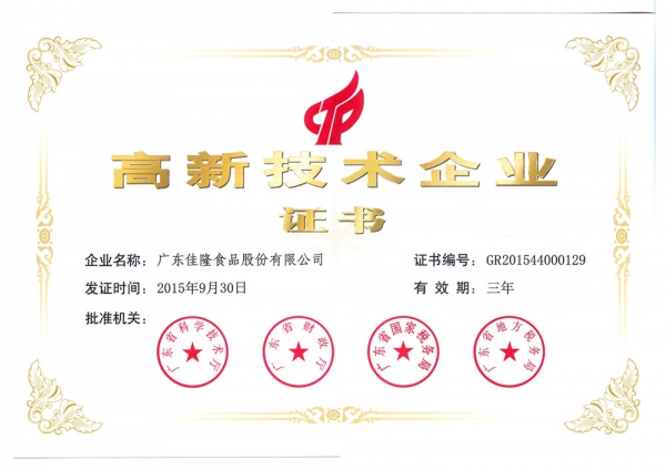 家豐雞粉:高新技術(shù)產(chǎn)品證書2015