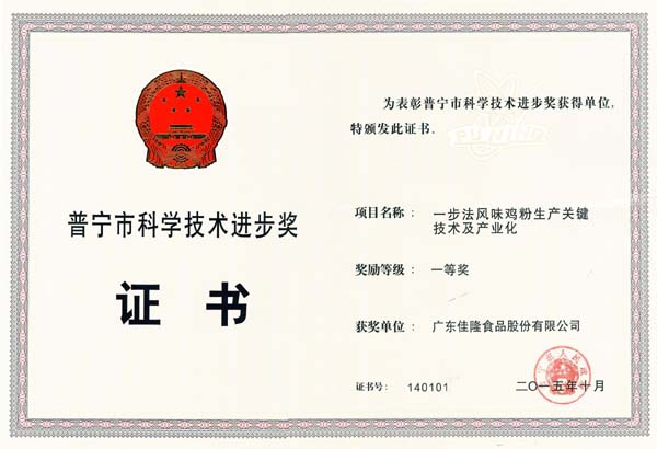 普寧市科技進(jìn)步獎(jiǎng)一等獎(jiǎng)
